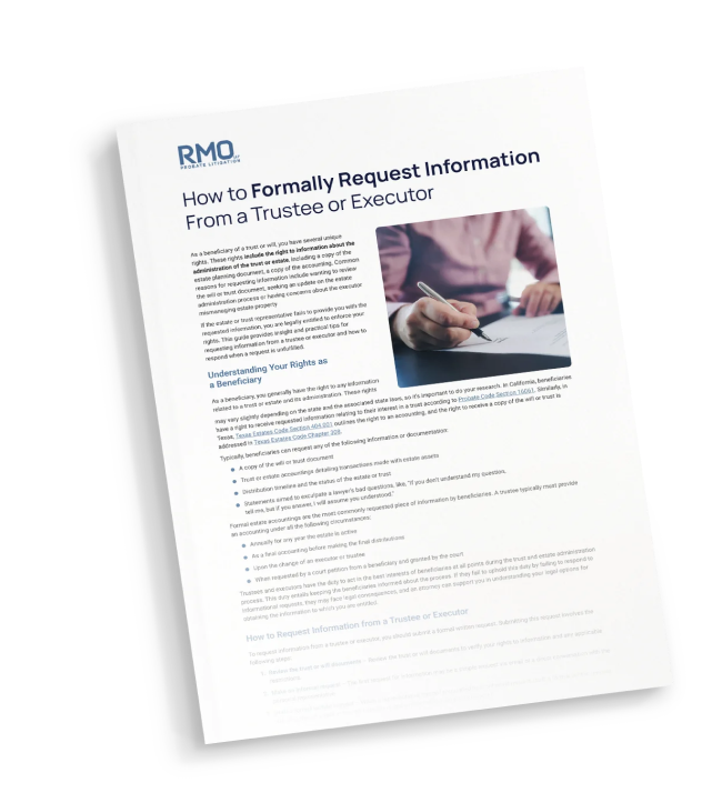 This resource provides an easy-to-understand starting point and clear template. If you need to formally request information from a trustee or executor, it’s wise to consult an estate administration attorney from RMO for guidance when submitting your request and following up.