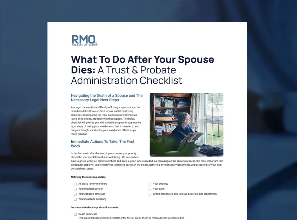 The death of your spouse is obviously a challenging and emotional time. The legal hassle of settling their affairs is the last thing you want to think about during the grieving process.